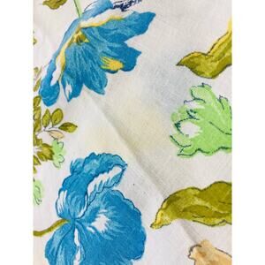 1960s Mod Retro Flower Power Table cloth Round Leaves Blue Green Yellow 65" Dia