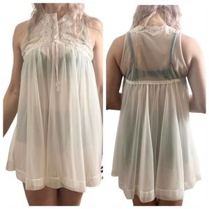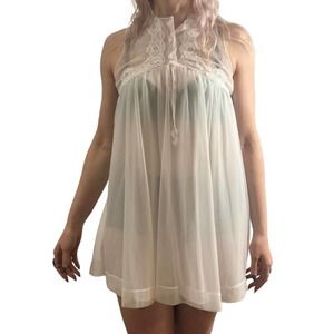 1960’s Mod Sheer White Peignoir Set Robe & Chemise Set, Small, Vintage Mid Century Sheer White Lingerie