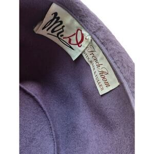 Tags: 1960s hat, vintage pillbox, lavender hat, angora felt, rhinestone hat, Mr D French Room, made in Austria, vintage millinery, quiet luxury, Derby hat, mid century fashion