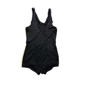 True vintage swimsuit! This navy and white beauty is a plus size dream find! It's a late 1950s or early 1960s one-piece with the little hip hugger skirt from Ocean. This was made in the US and is all nylon. Listed as a size 38, which should be a modern 14/16ish. I'm a modern 14/16 that' 5'6" and I could wear this except for the torso length was a little too short for me and made getting into the arm holes hard. I would recommend this for a modern 14 around 5"4 or so for the best fit or shorter torsos. The torso measurement (shoulder to crotch) is the most important here.