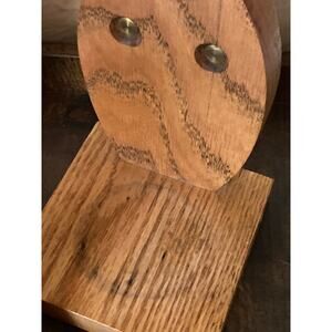 1. Vintage wooden owl bookends with adorable bronze eyes. 5.5 x 4 x 4. Green felt bottoms. In really good condition except for a cup stain on one of the bookends. Leave it as is, or bring it more to life with some paint!