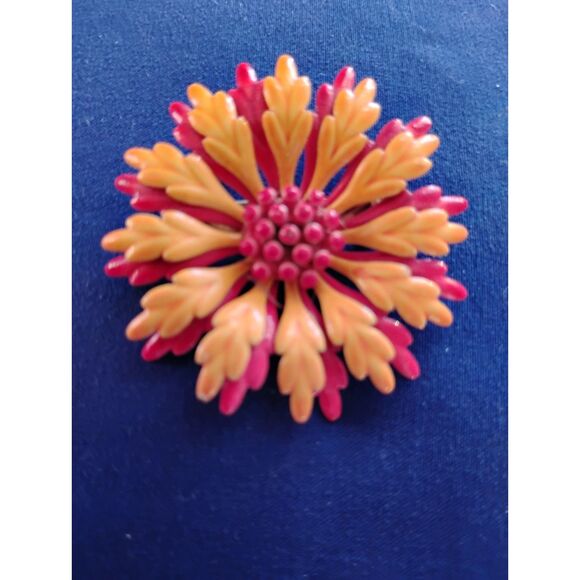 1960s Orange Enamel Flower Brooch Pin Vintage Statement