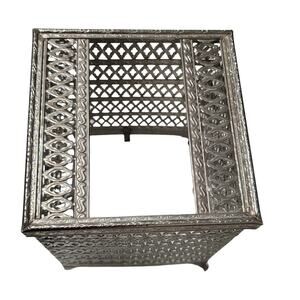 1960s Ornate Filigree Design Silver Tone Tissue Box Holder Hollywood Regency Era
