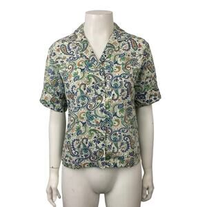 1960s Paisley Print Button Up Blouse Shirt Top / Women’s Small *
