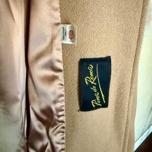 Gorgeous 1960s Pia de Roma swing coat in camel wool with real rabbit fur trim on the collar, cuffs, and hem. Beautiful mid-century silhouette with a fitted waist and flare. Fully lined. Excellent vintage condition—soft, clean, and ready to wear. ■ 100% virgin wool ■ Real rabbit fur trim ■ Made in USA, union label ■ Swing/flare silhouette Condition: Excellent for age. No visible stains or holes. Fur is soft and full. Perfect statement coat for collectors or vintage lovers!