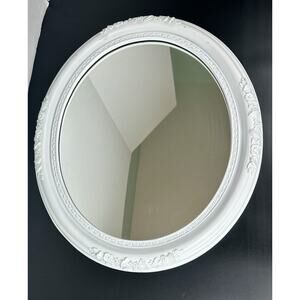 1960s Recessed Oval Framed Shabby Chic Oval Mirror Ornate White General