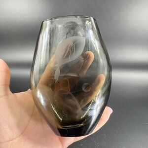 1960s Rosenthal Dark Smokey Art Glass Abstract Shaped Vase Old Marked Vintage