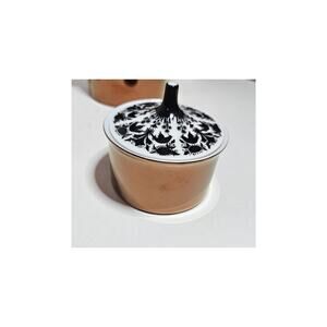 Berlin tableware designed by Hans Theo Baumann for Rosenthal. The pattern is known as 'Hilton' and was designed by Bjorn Wiinblad. The crisp matt black design is a stylized depiction of birds and foliage.