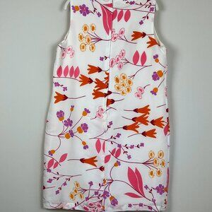 Bright as any summer bloom, this shift dress is ready for anything. Go strolling, sip tea, or munch at brunch, you'll look fresh the whole time. The lining of the dress is assumed cotton and the whole ensemble is smooth and light.