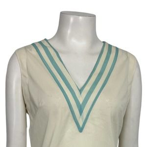 1960s Sleeveless Stripe V Neck Loungewear Long Top Sleepwear / Medium