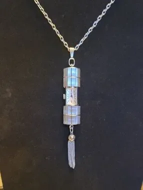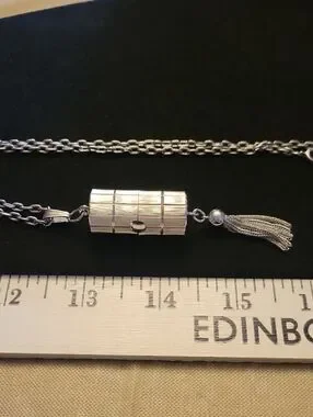 On a 24" chain, the closed barrel measures approx. 1.25" and when opened almost 2". With tassel, barrel has a 2.75" drop.