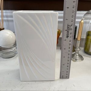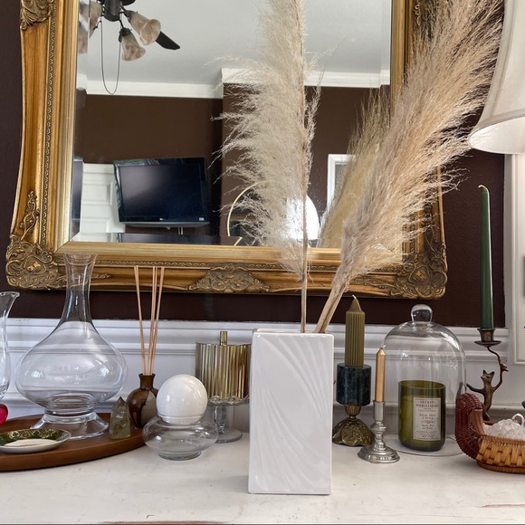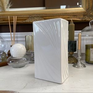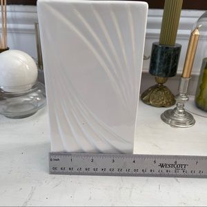 Luxe yet minimal this vase is the perfect neutral piece you need on your shelf or vanity. Excellent condition (teeny tiny black speck and tiny white spot of extra glaze, see photos). Please see photos for dimensions and details.
