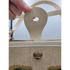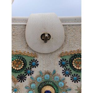 1960s Tote Bag Colins Jeweled Floral Beaded Design Button Closure Wood Bottom