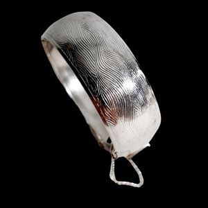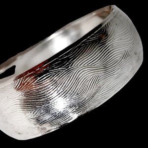 1960s True Vintage Wide Textured Silver Tone Metal Bangle Bracelet By Coro