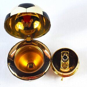 1960’s VINTAGE FRENCH GOLDTONE TABLE CIGARETTE EMPTYLIGHTER BL & WH SOCCERBALL