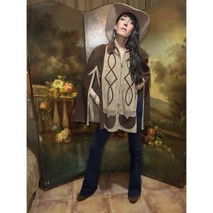 1960s VINTAGE LEATHER CAPE Slits Zipper Detailing Two Tone