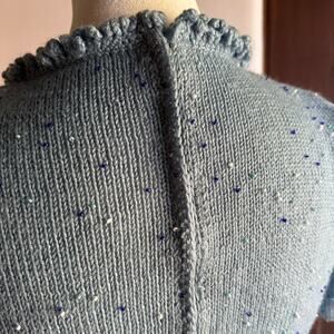 1960s VINTAGE | Unique Blue Beaded V Neck Sweater Dress