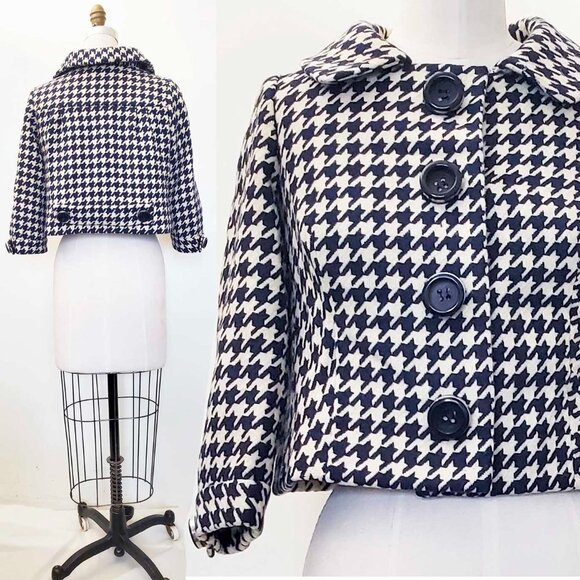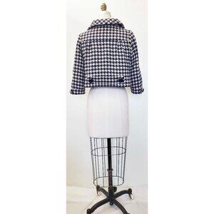 Original and Iconic 1960s Cropped Jacket in Navy and White Houndstooth Wool by Sylvides Creations Paris.