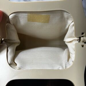 1960’s Vintage Beaded Crocheted Purse Mode Retro Boho Cream Plastic Handle. 9 wide 8 tall
