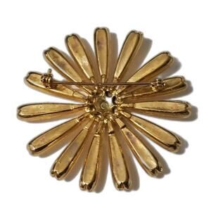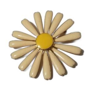 60s Vintage Cream Enamel Ware Daisy Brooch Pin Yellow Center Gold Tone 2 Inch