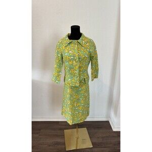 1960s Vintage Handmade Two Piece Suit Mod Rockabilly MCM Dress Jacket Yellow