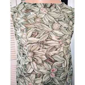 Charming 1960s handmade dress in a lightweight green floral fabric. Features a plunging back with oversized bow, hidden side pockets, and an easy slip-on style with no closures. In excellent, like-new condition.