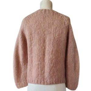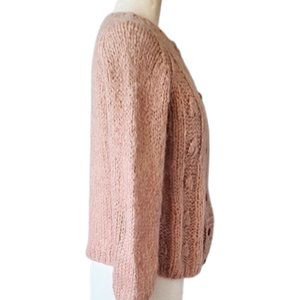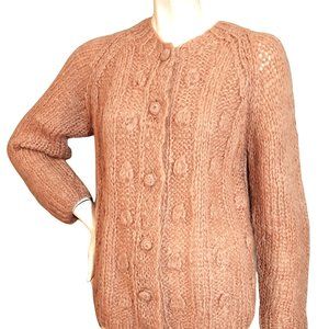 1960s Vintage Peach Taupe Warm Chunky Hand Knit In Italy Cardigan Sweater Large