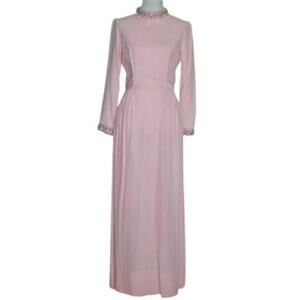 1960s Vintage Pink Velvet Gown with Embellished Details Small