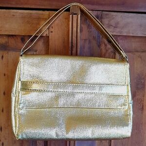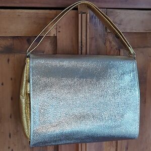 1960s Vintage Retro Gold/Silver Foil Convertible Vinyl Handbag Adjustable Strap