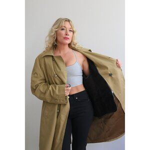 1960's Men's vintage coat in size lg/xl. Double breasted button front with collared neckline. Fully lined in matching muted green nylon lining. Removable faux fur inner lining that can be zipped out when weather warms. Outers of the jacket are a cotton blend in mint green with clay orange micro houndstooth print. In near mint, excellent vintage condition with no flaws to note.