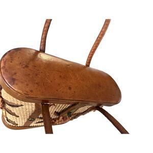 • 1960s handmade woven straw and tooled leather handbag