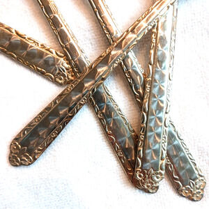 1960s old Vintage Gold Electro Plated Stainless Cutlery JAPAN Rare Pattern FLORAL GEOMETRIC Pattern