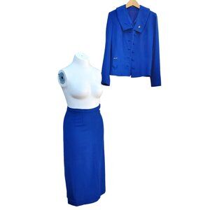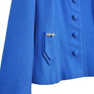 1960s Women Skirt Suit Royal Blue Wool 10 12 Union Label Rhinestones