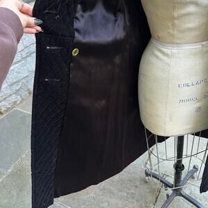 • 60s black velvet double breasted quilted coat with black lining and black buttons