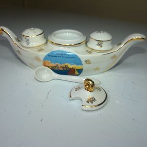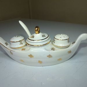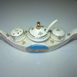 1960s vintage boat salt pepper mustard/jelly has spoon good shape what you see is what you get make offer