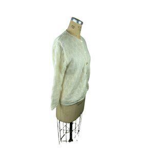 1960s white mohair cardigan sweater pointelle knit Size M/L