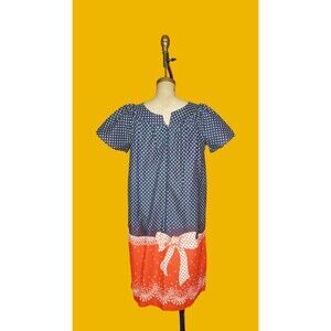 1960s-1970s Red, White, & Blue Polka Dot W/BOW RIBBON Trompe Loeil Print Dress S