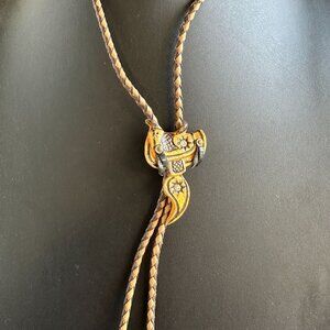 - Braided leather bolo cord in two-tone brown