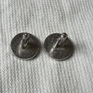 These vintage cufflinks from the 1960's-70's feature a unique unicorn theme in a silver tone design. The cufflinks are round in shape with no diamonds or colored stones, making them suitable for both men and women. The style is bullet back for easy wear, and despite being unsigned, they are a charming accessory for adding a touch of whimsy to any outfit.