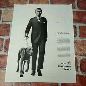 1961 Hart Schaffner & Marx Men's Suits Man Walking Dog "Public Figure" Vtg B&W PRINT AD