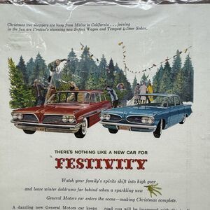 1961 Pontiac Safari Wagon Tempest Festive Ad Christmas Tree Lot Farm Vintage GM