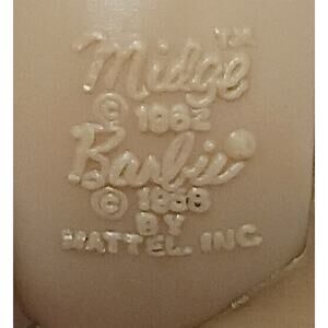 Straight legs. Left butt cheek is marked 7, right butt cheek is marked "Midge 1962 * Barbie 1958 By MATTEL INC * Patented.