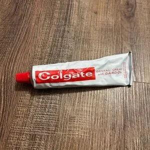 Classic 1962 Colgate toothpaste box in bright red. Features iconic branding.
