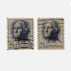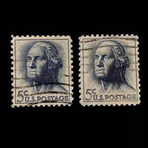 1962 George Washington 5-cent Blue Stamp Set of 2 Used Stamps