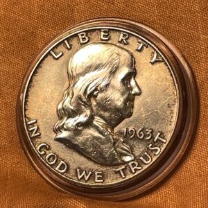 The 1963 Franklin P Sue Half Dollar is a circulated coin made of 90% silver. Minted in Philadelphia, this coin features the profile of Benjamin Franklin on the obverse and various symbols representing the United States on the reverse. Uncertified and in AU grade, this piece of US currency encapsulates the historical significance and numismatic value of a bygone era. 205791464039
