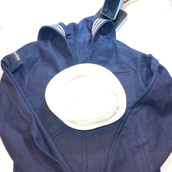 1964 VIETNAM ERA USN U.S. NAVY JUMPER SAILOR BLACK JUMPER CRACKER JACK 38R W/CAP