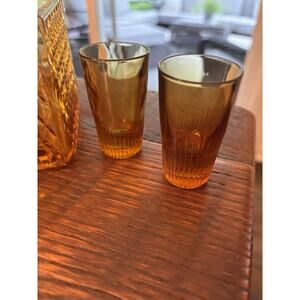 1965 Amber Whisky Decanter & 4 Shot Glasses MCM Indiana