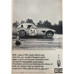1965 Champion Spark Plugs - Lot Of 2 Racing Ads - Austin Healey, Lotus Formula 1