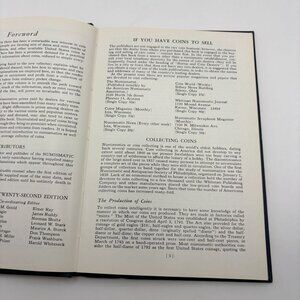 This 1965 Handbook of United States Coins by R.S. Yeoman (22nd edition) provides comprehensive details on mint records and pricing. This hardcover reference includes guidance on collecting, appraising, and identifying U.S. coins, providing information on mint marks, historical minting practices, and grading standards. Coin images, price ranges, and a historical perspective make it an informative resource. It's an essential tool for numismatics, serving both professionals and hobbyists. Published by Whitman Publishing in Racine, Wisconsin, this book is well-organized and highly detailed.