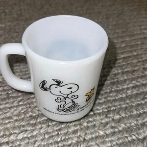 1965 Snoopy & Woodstock "AT TIMES LIFE IS PURE JOY!"Milk Glass Fire King Mug Cup